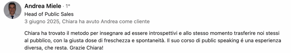 Costruiamo insieme il prossimo Corso di Formazione su Misura in Public Speaking e Comunicazione Efficace per la tua azienda? Chiedici come da qui.
